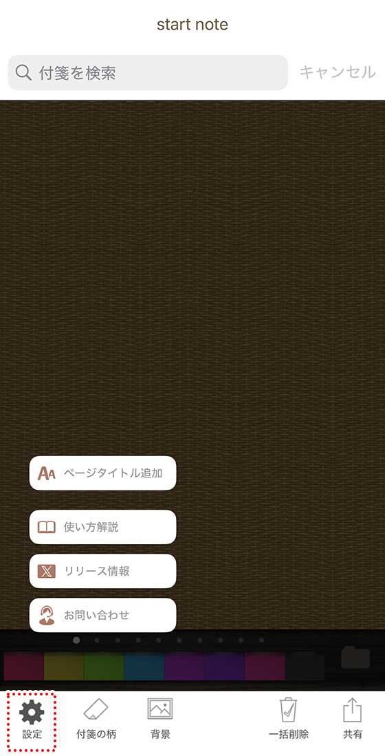 まず、画面をタップすると出てくるメニューから「設定」をタップします。
