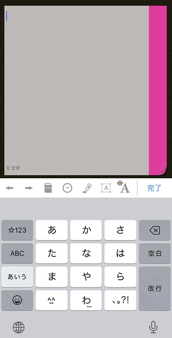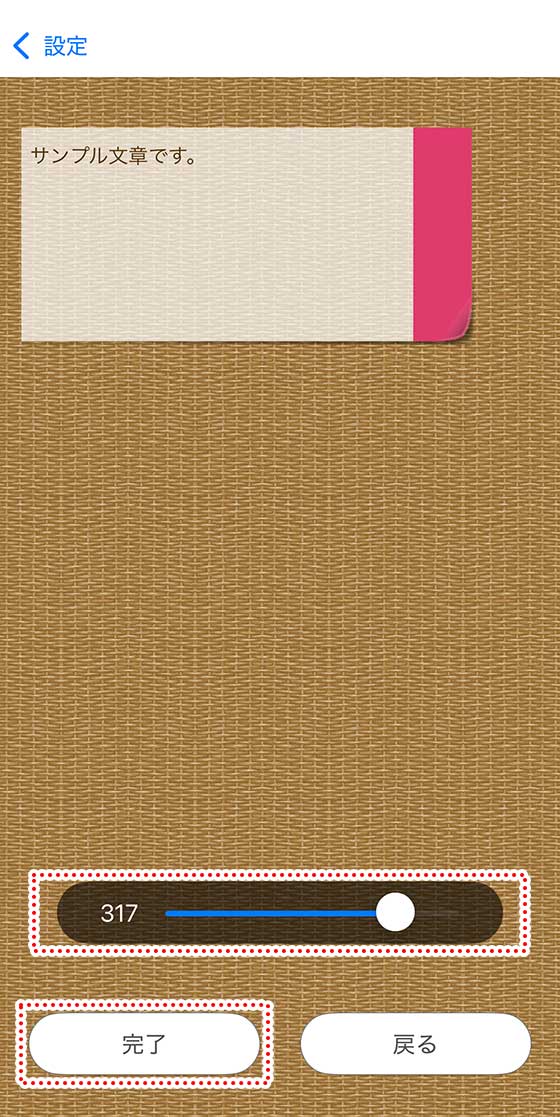 画面下のバーを左右に動かして付箋の幅を変更した後、「完了」ボタンをタップ。