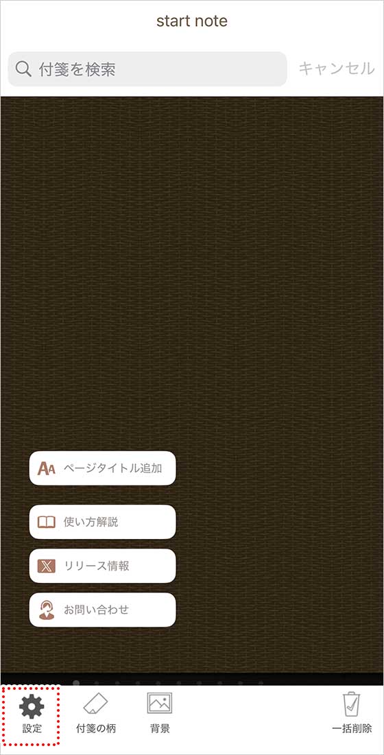 まず、画面をタップすると出てくるメニューから「設定」をタップします。