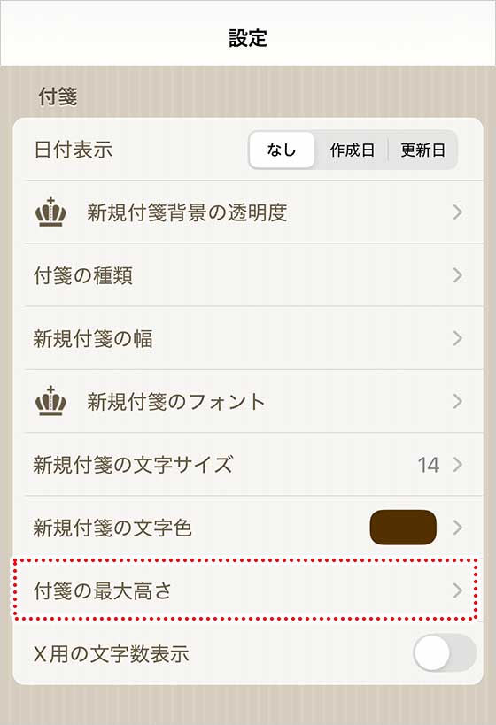 下にスクロールしていって「付箋の最大高さ」をタップします。