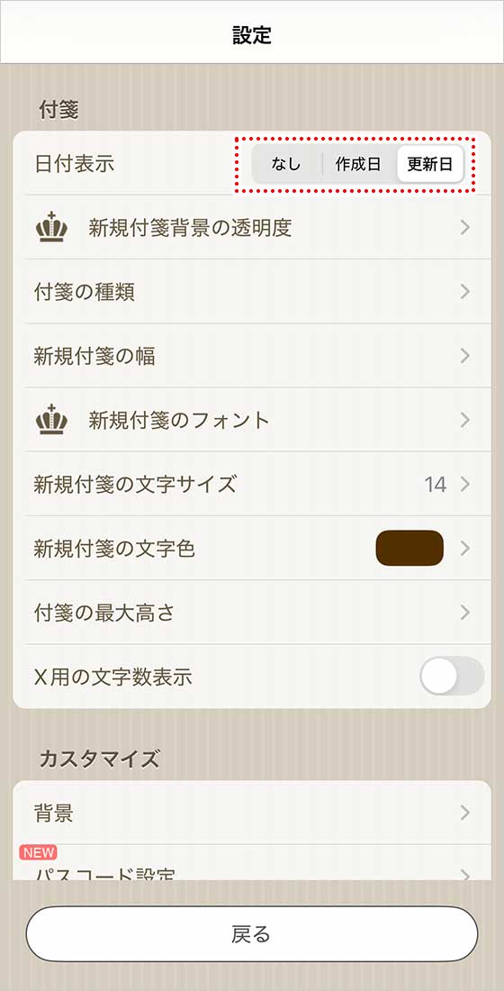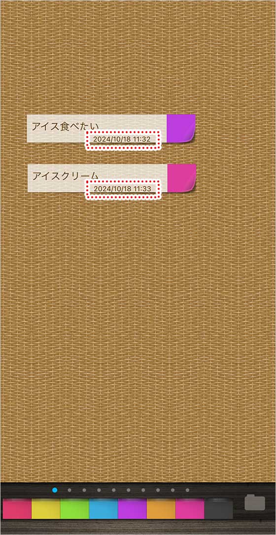 QuickMemo+ 付箋に更新日時を表示したい(quickmemo) atagon 2019年6月3日 2024.10.18 開発者あたか 付箋の更新日時を表示する方法を説明いたします! 桃忍者 表示できるだか? 開発者あたか まず、画面をタップしてメニュー画面を開き「設定ボタン」をタップして下さい。 開発者あたか そして「日付表示」欄で「更新日」を選択します。 開発者あたか これで更新日時が表示されるようになります。 桃忍者 ええじゃな〜い。