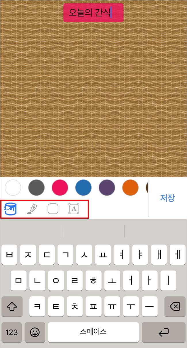 좋아요, 페이지 제목 편집 화면으로 가세요. 그러면 키보드 위에 네 개의 버튼이 보일 거예요.