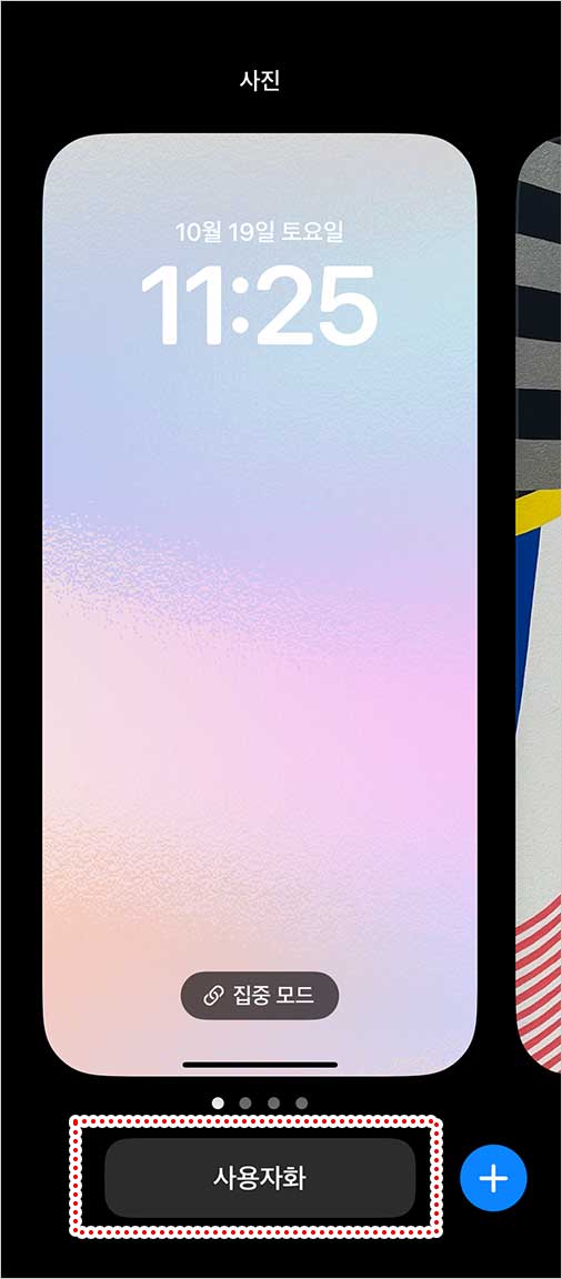 먼저, 잠금 화면을 길게 누른 후 ‘사용자화’ 버튼이 나타나면 눌러주세요.