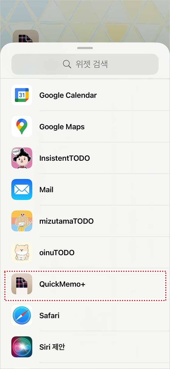 ‘QuickMemo+’가 위젯 목록에 없으면, 다음을 시도해보세요: