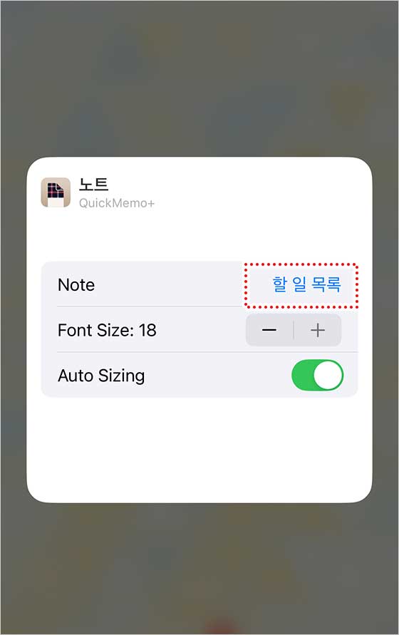 이제 선택한 메모가 홈 화면에 표시될 거예요.