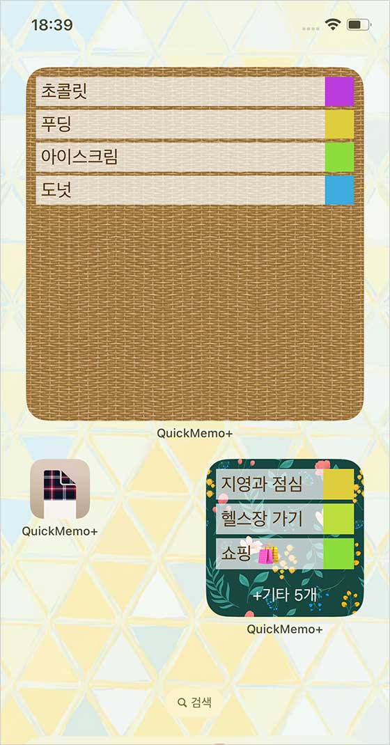 원하는 만큼 위젯을 추가할 수 있어요, 그래서 여러 개의 메모를 표시할 수 있어요.