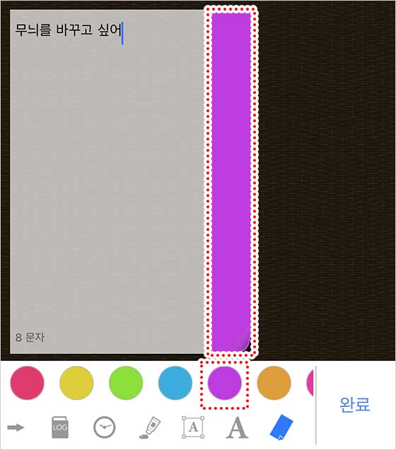 QuickMemo+-kr 패턴 변경하기(QuickMemo+-kr) atagon 2024年10月9日 2024.10.19 아타카 관리자 스티키 노트의 패턴을 변경하는 방법을 알려드릴게요! 복숭아 닌자 마침 그거 생각하고 있었어요! 아타카 관리자 먼저, 스티키 노트를 편집할 때 화면 하단에 있는 ‘패턴 변경’ 버튼을 누르세요. 아타카 관리자 그러면 ‘패턴 선택 패널‘이 나타날 거예요. 복숭아 닌자 흠… 아타카 관리자 마음에 드는 패턴을 선택하면 바로 변경됩니다. 복숭아 닌자 지금 바로 해볼게요!