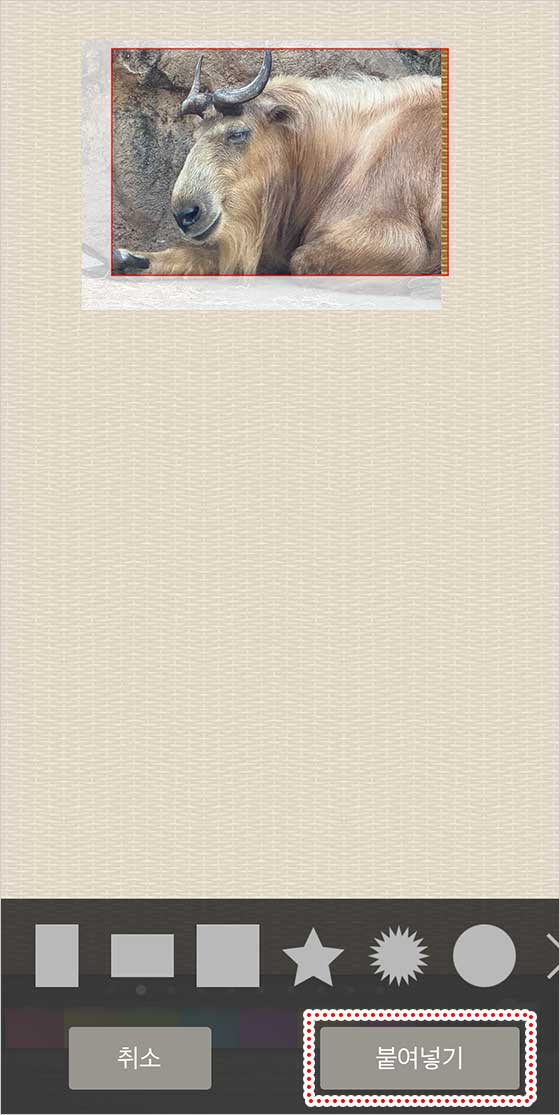 크기와 위치가 마음에 들면 ‘붙이기‘ 버튼을 누르세요.