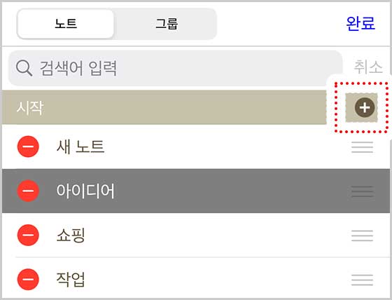 다음으로, ‘+‘ 버튼을 눌러 새로운 노트를 추가하세요.