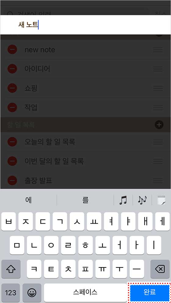 이름 변경 화면이 나타나면 저는 이걸 ‘새 노트‘로 바꿀 거예요.