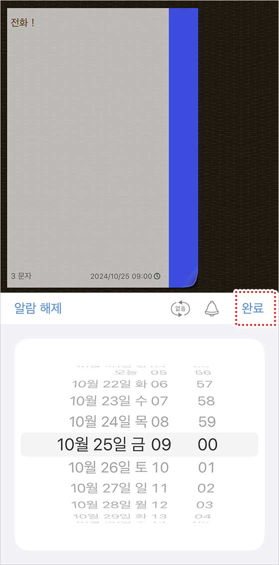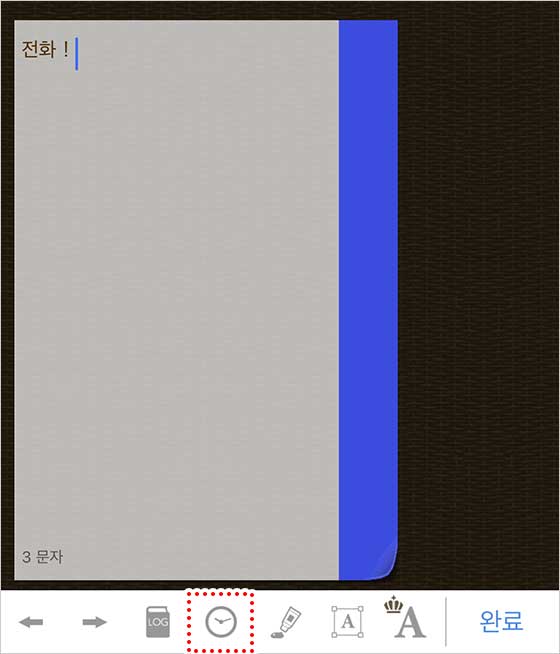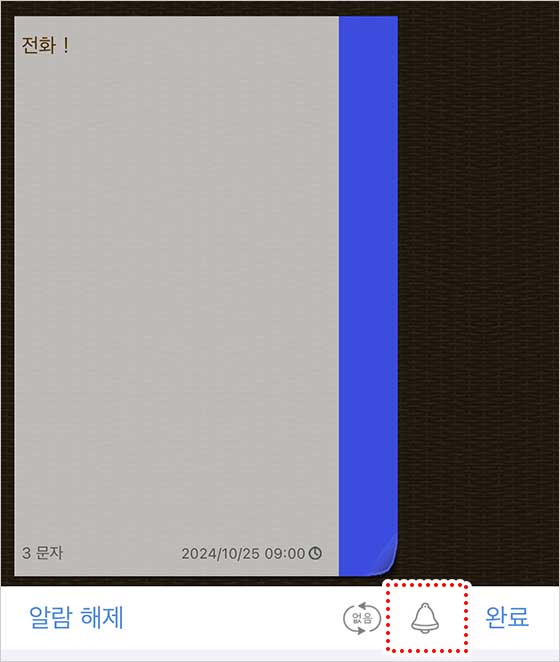 먼저, 스티키 노트 편집 화면에서 ‘알람 버튼‘을 누르세요.