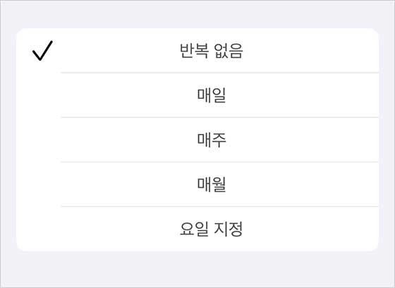 알람을 반복하려면, 반복 아이콘을 누르세요.