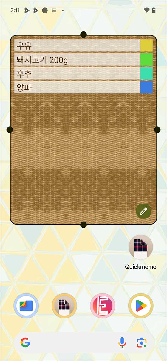 거기서 “QuickMemo”를 길게 눌러줘.