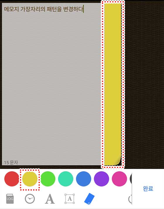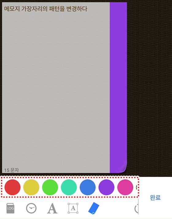 QuickMemo+Android-kr 패턴 변경하기(QuickMemo+Android-kr) atagon 2024年10月27日 2024.11.05 아타카 관리자 메모의 가장자리에 있는 패턴을 바꾸는 방법을 알려줄게! 복숭아 닌자 나도 막 바꿔보려던 참이었어! 아타카 관리자 좋아! 먼저, 메모 편집 화면 아래에 있는 “패턴 변경” 버튼을 눌러봐. 아타카 관리자 그러면 “패턴 선택” 패널이 열릴 거야. 복숭아 닌자 음… 알겠어. 아타카 관리자 마음에 드는 패턴을 선택하면 바로 적용될 거야! 복숭아 닌자 좋아, 지금 바로 해볼게!
