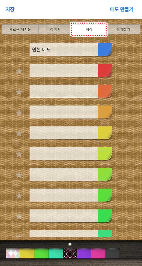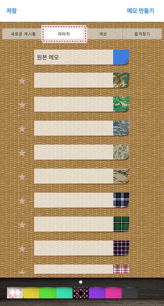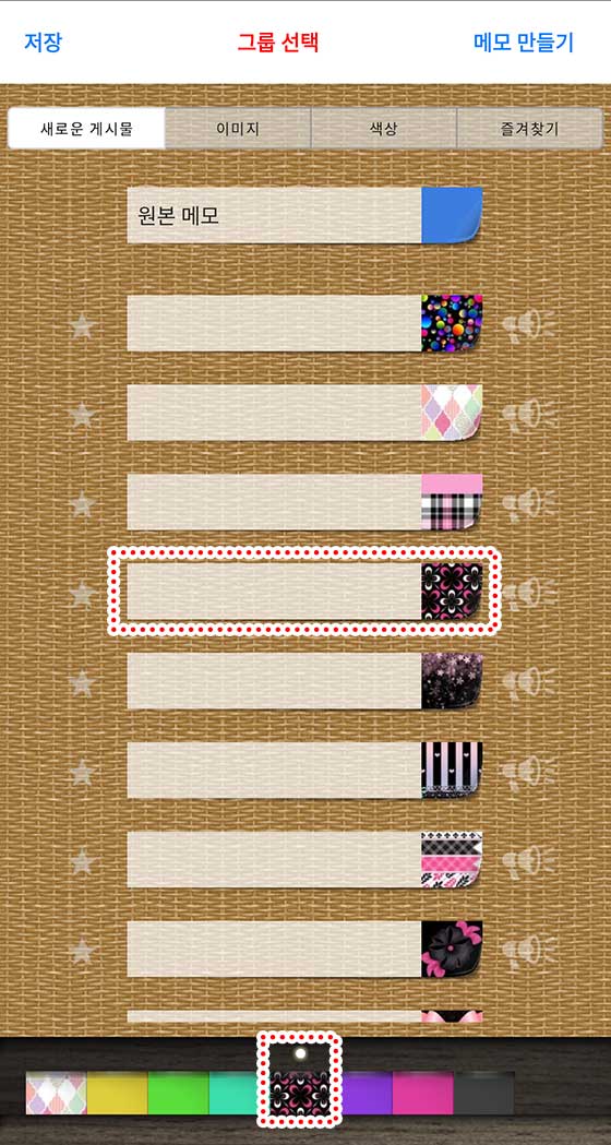 또한, 화면 상단의 “이미지”나 “색상” 탭을 선택하면 공식 디자인과 다양한 색상의 메모를 선택할 수 있어!