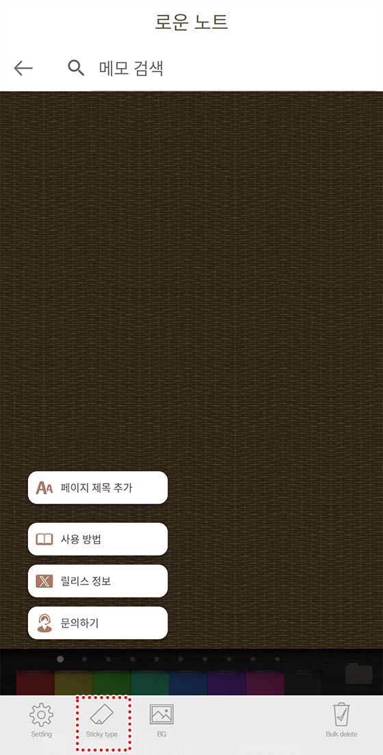 먼저 화면을 탭하고, 아래에 있는 “스티키 타입” 버튼을 눌러봐.