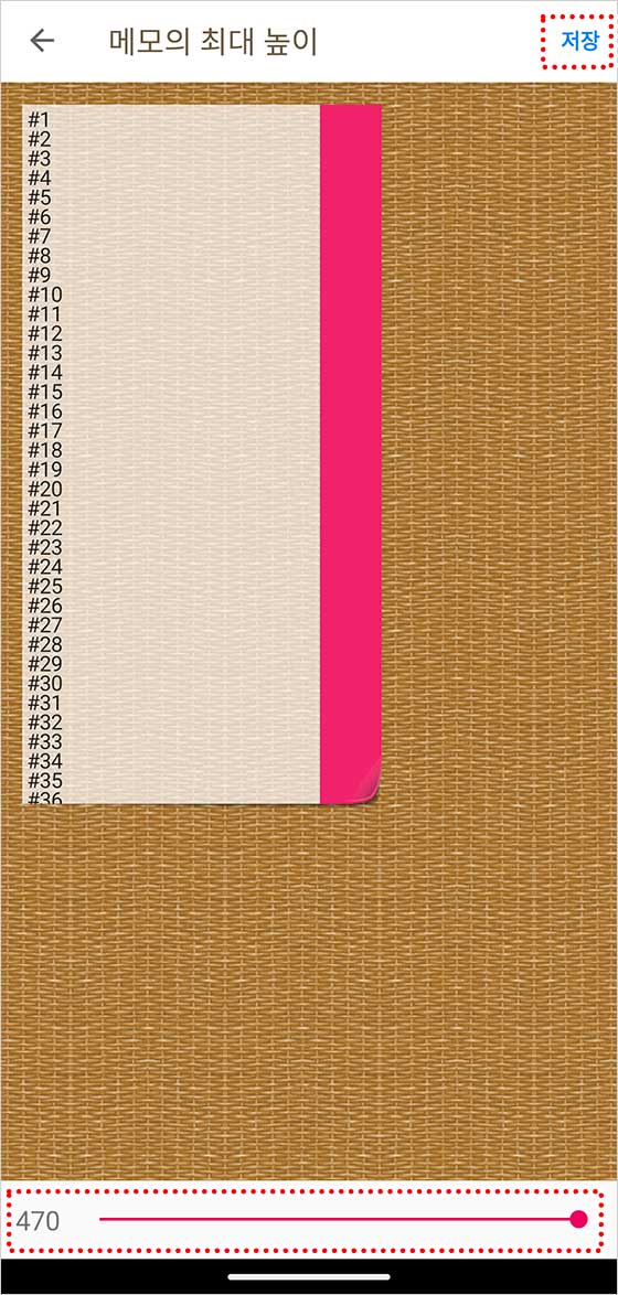 화면 하단의 바를 사용해 메모에 표시되는 줄 수를 조정할 수 있어. 설정이 완료되면 오른쪽 상단에 있는 “저장” 버튼을 눌러줘.