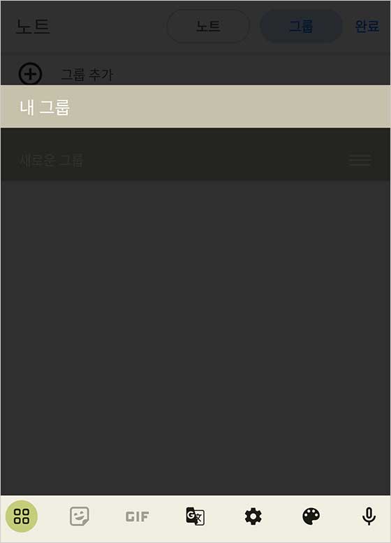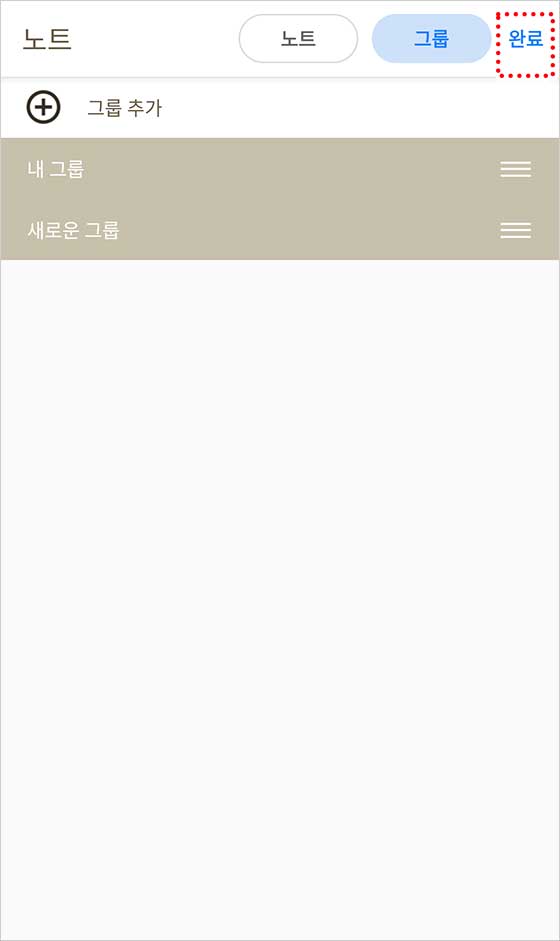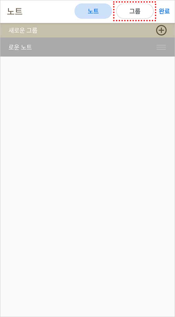 처음에는 “노트 편집” 모드가 열리니까, 상단의 “그룹” 탭을 눌러 “그룹 편집”으로 전환해줘.