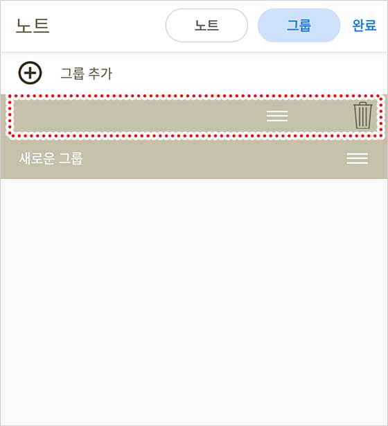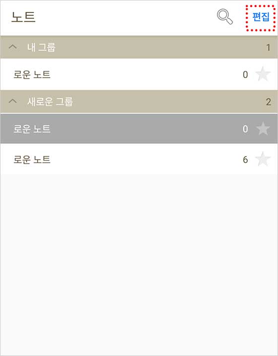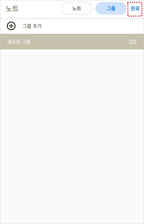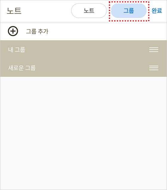 처음에는 “노트 편집” 모드이므로, 상단의 “그룹” 탭을 눌러 “그룹 편집”으로 전환해줘.