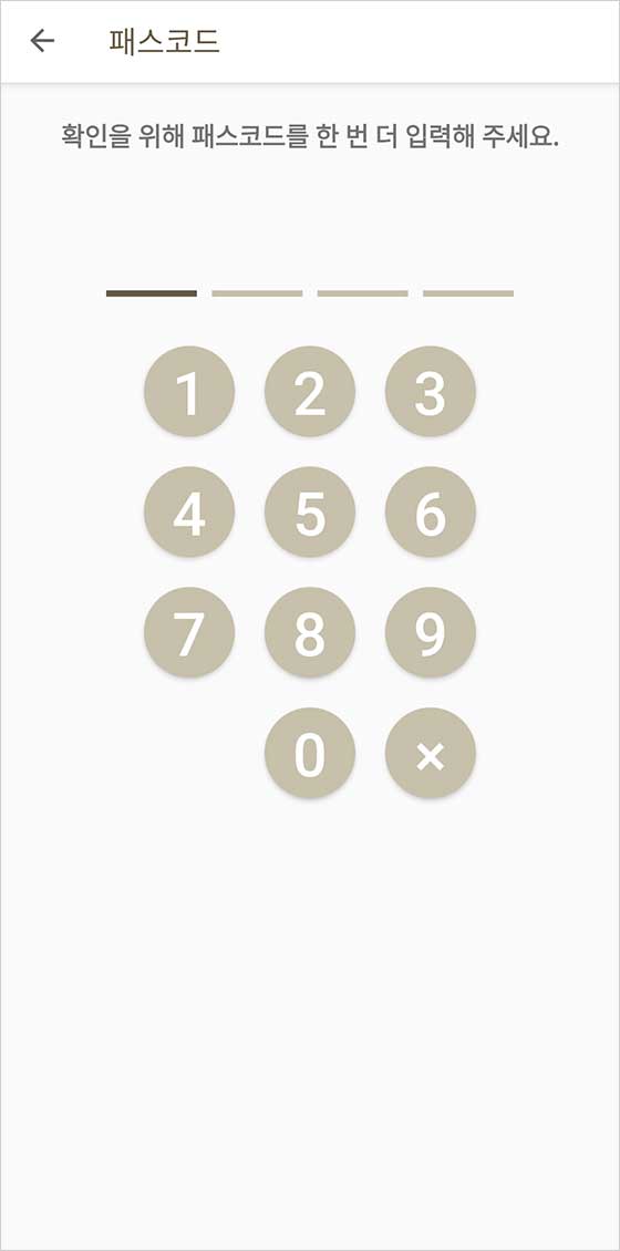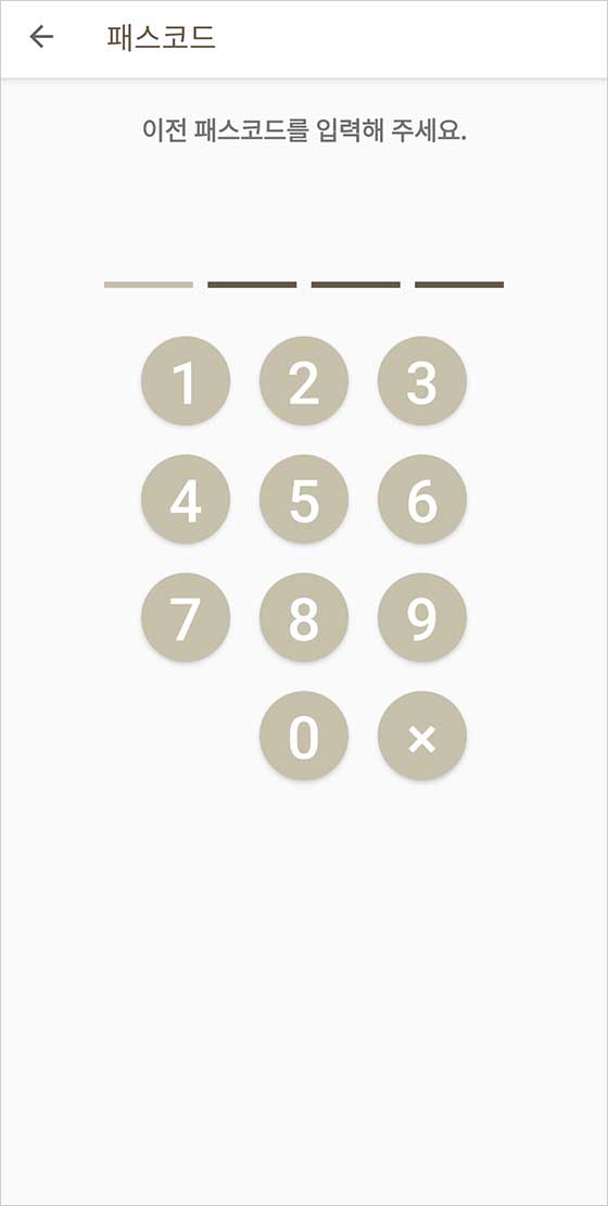 비밀번호 입력 화면이 나타나면, 사용할 네 자리 숫자를 입력해.