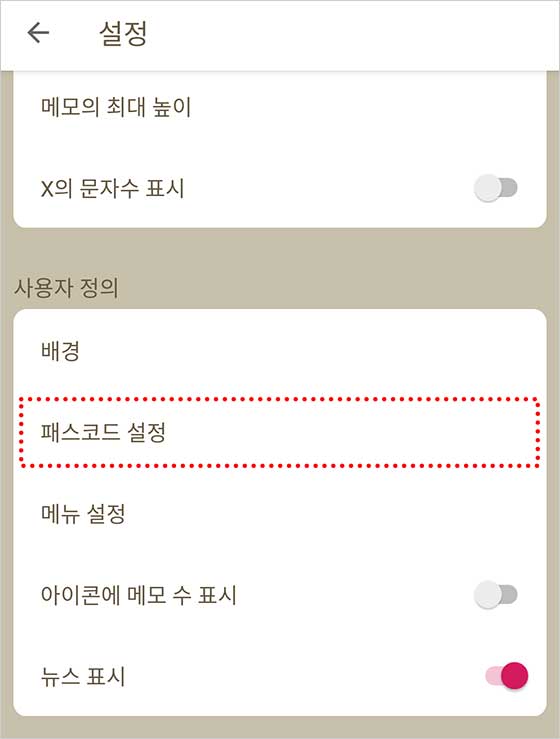 비밀 노트에만 비밀번호 적용