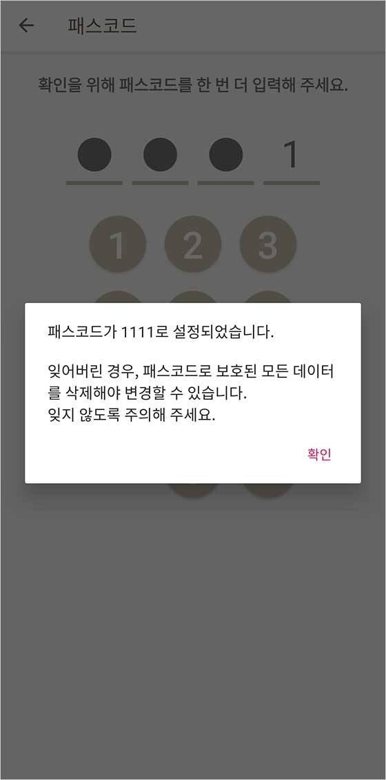확인 화면이 나타날 거야. 처음에 입력한 숫자를 다시 입력해 확인해줘.
