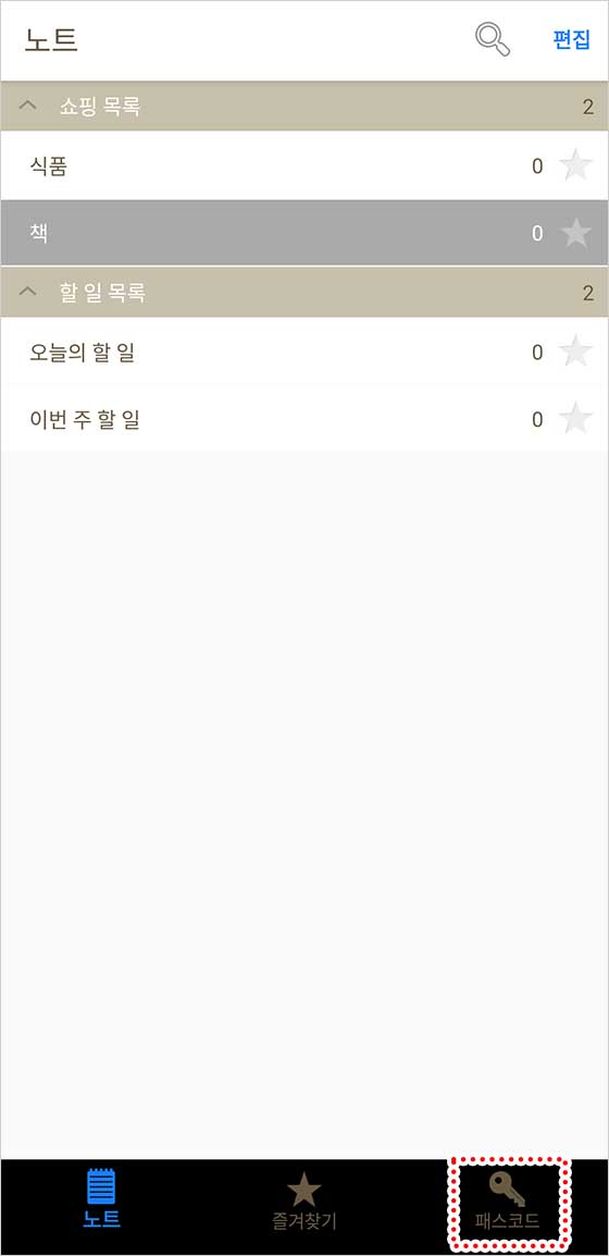 여기에 저장된 노트만 열 때 비밀번호가 필요해.