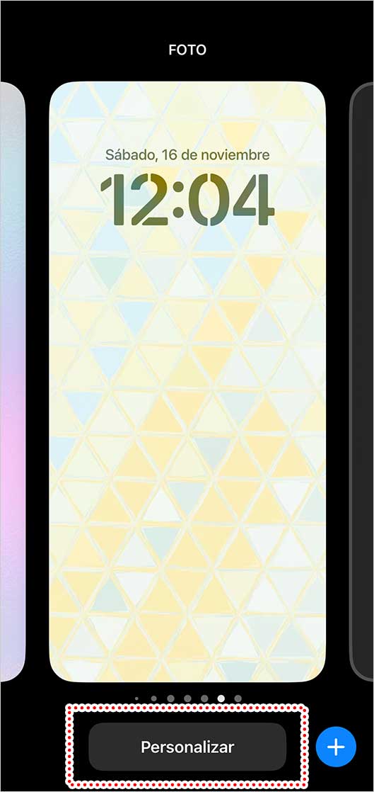 Primero, mantén presionada la pantalla de bloqueo y toca “Personalizar” cuando aparezca la opción.