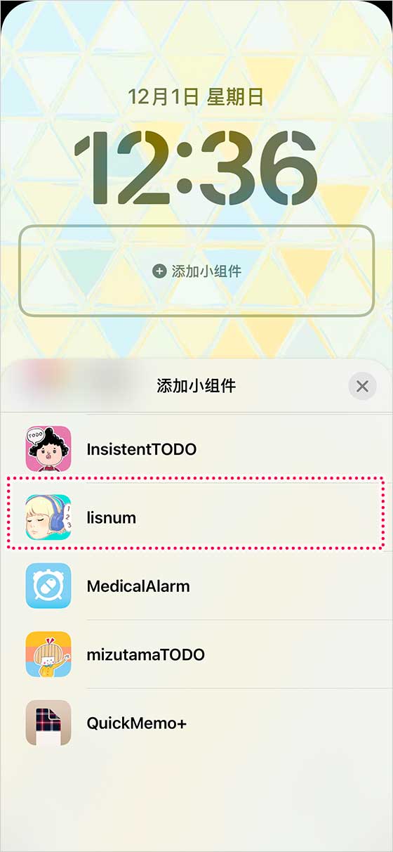 你會看到一個可以添加到鎖屏的小部件應用列表。選擇「Lisnum」。