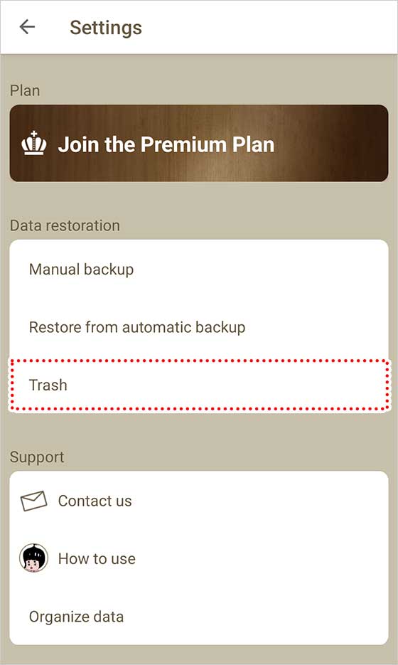 Layar pengaturan akan terbuka. Gulir ke bawah dan ketuk “Tempat Sampah.”