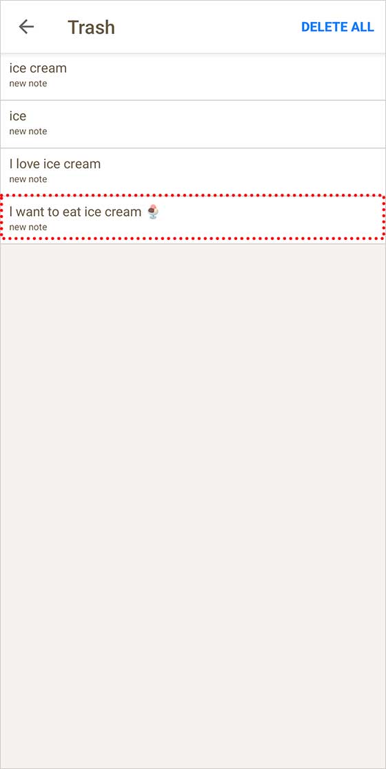Kamu akan melihat daftar catatan tempel yang terbuang.