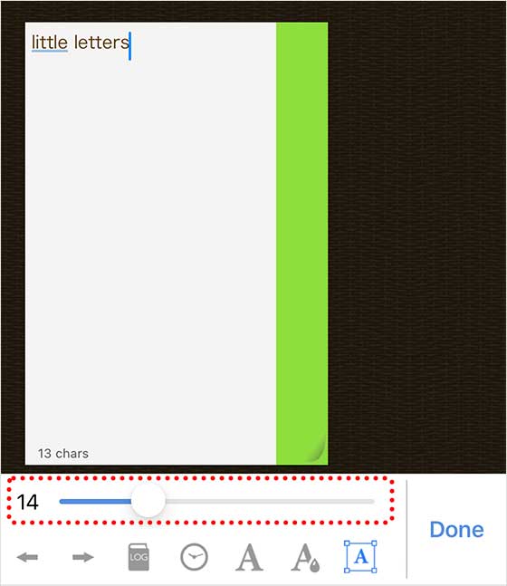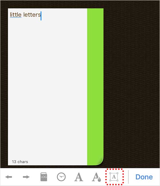 First, tap the ‘Change Text Size‘ button at the bottom of the screen while editing the sticky note.