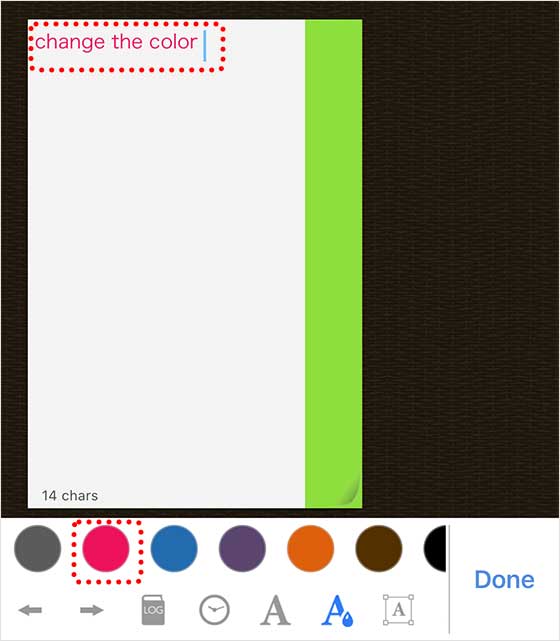 물론이에요! 먼저, 메모를 편집할 때 화면 아래에 있는 “색 변경” 버튼을 눌러주세요.