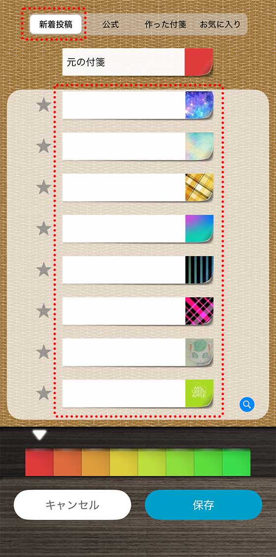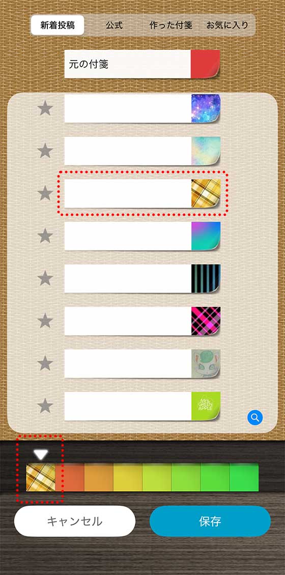 使いたい付箋の柄が見つかったら、その付箋をタップします。すると、下の付箋一覧にセットされます。