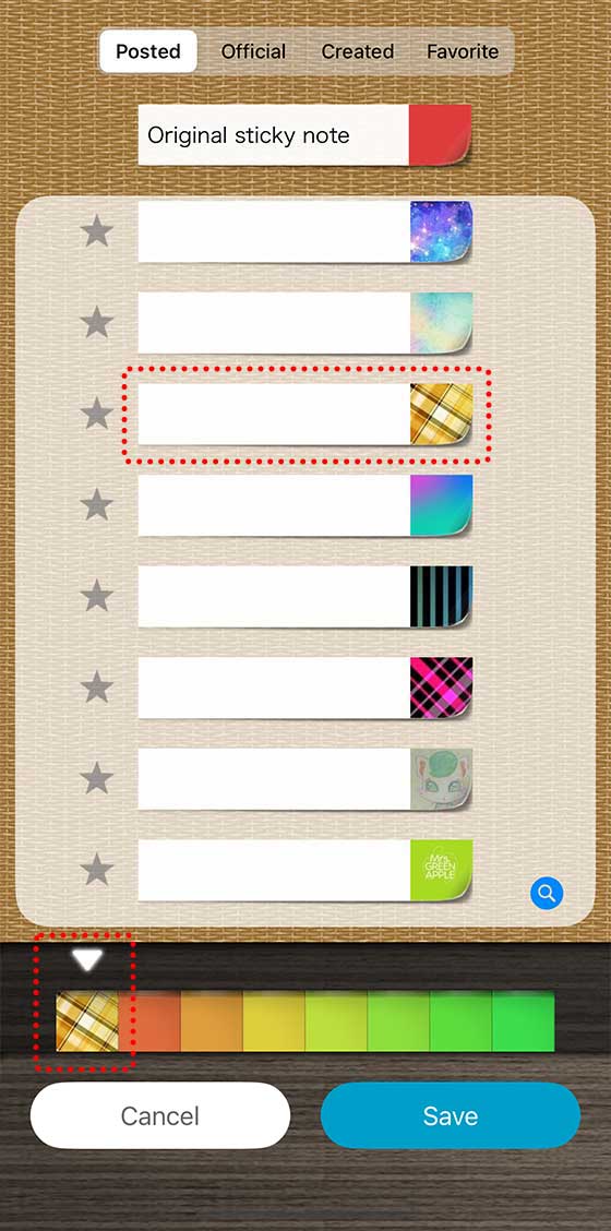 When you find a sticky pattern you want to use, tap it. The sticky will be placed on the sticky list below.