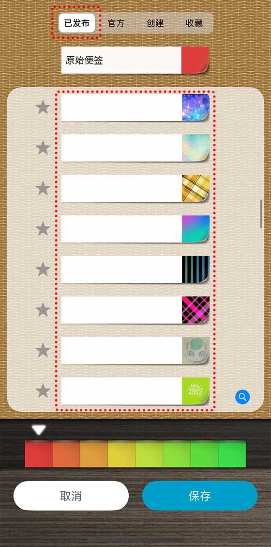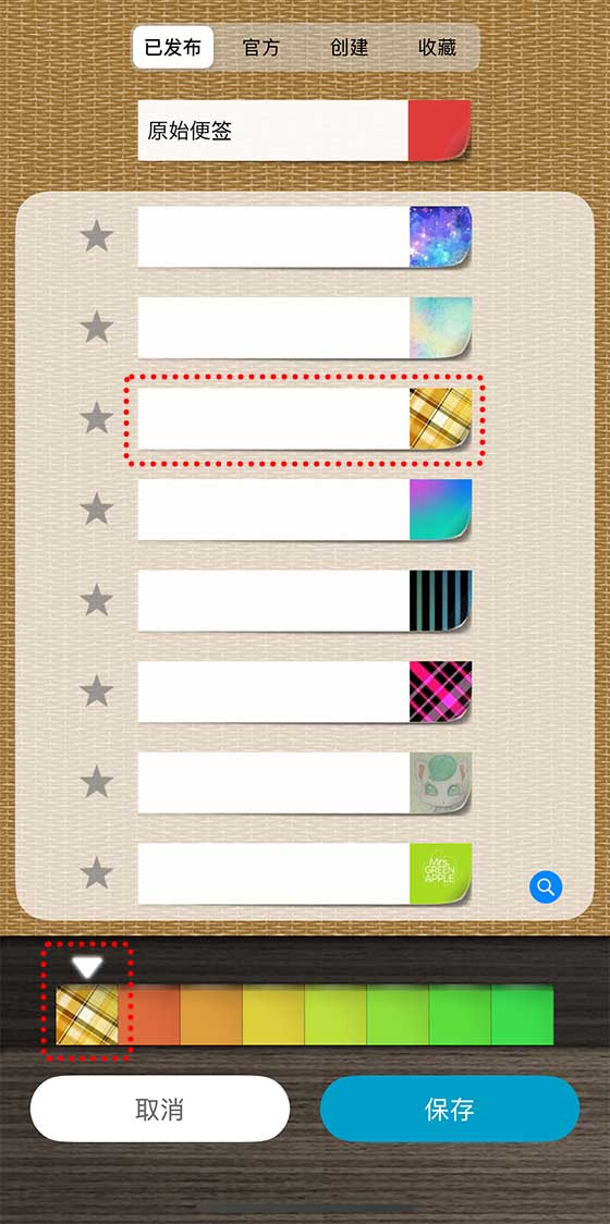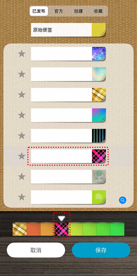 选择「官方」时,你就能从 QuickMemo PRO 开发团队准备的颜色和设计中进行挑选!