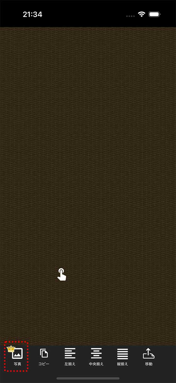 まず、画面を長押しすると出てくるメニューにある「写真」をタップして下さい