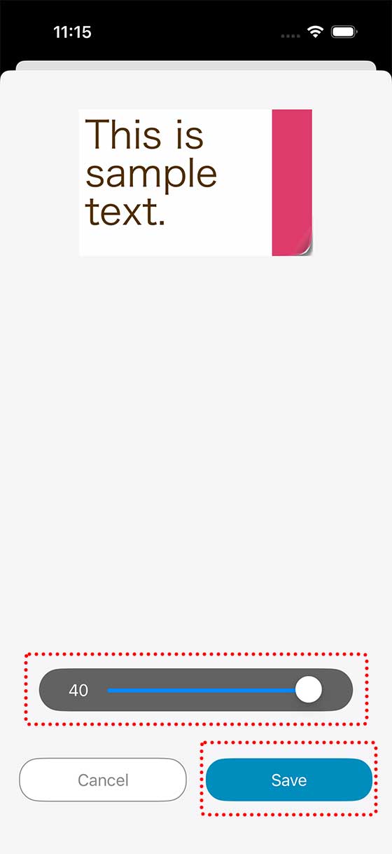 On the screen, use the resize bar at the bottom to set the text size you want.