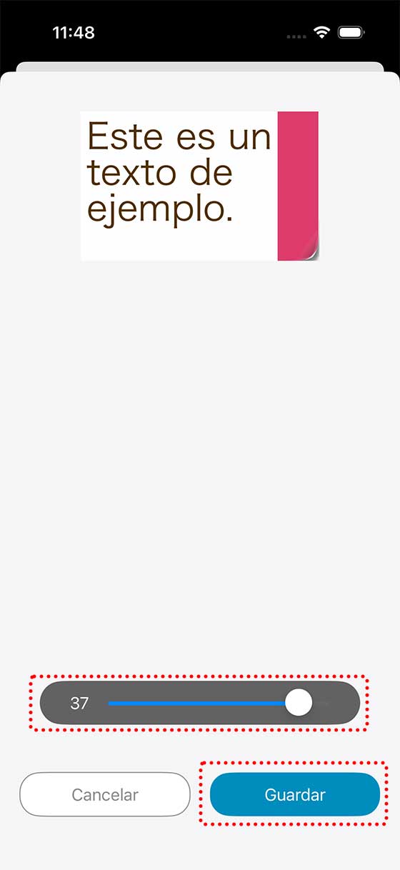 En esta pantalla, usa la barra de ajuste en la parte de abajo para elegir el tamaño de letra que quieras.