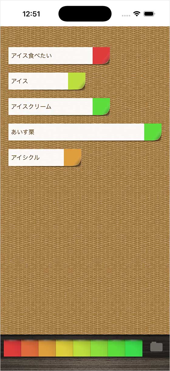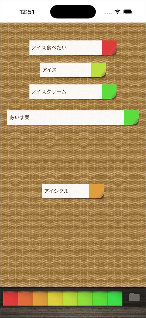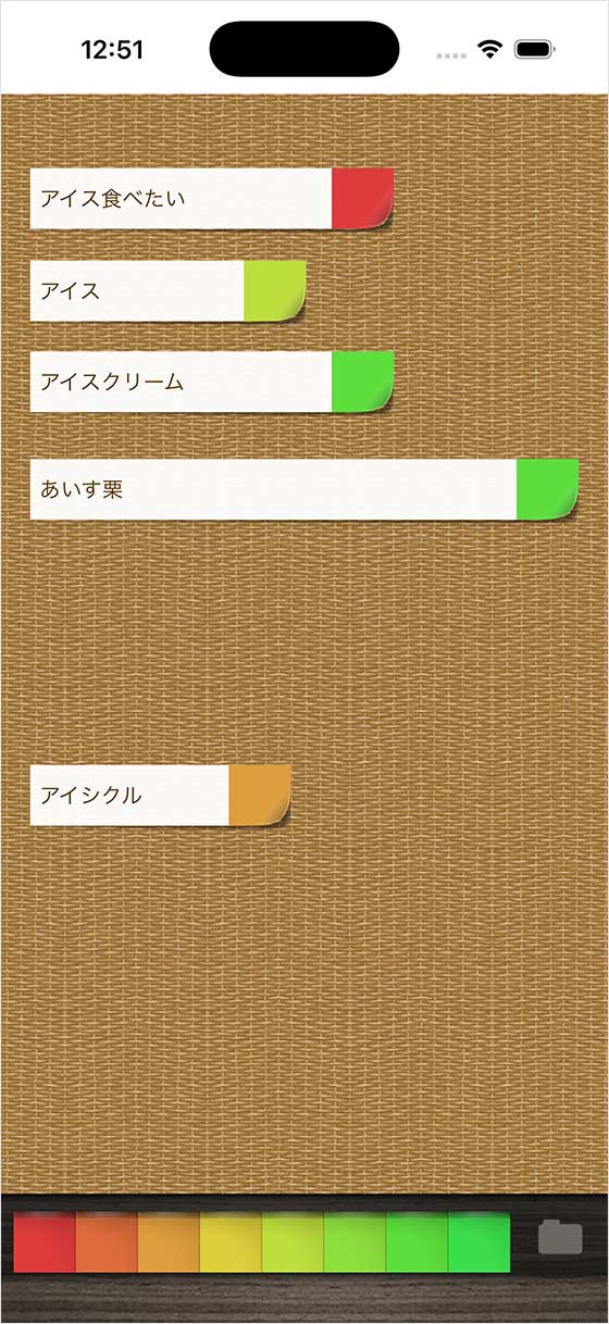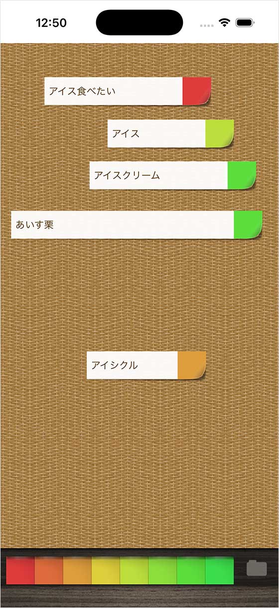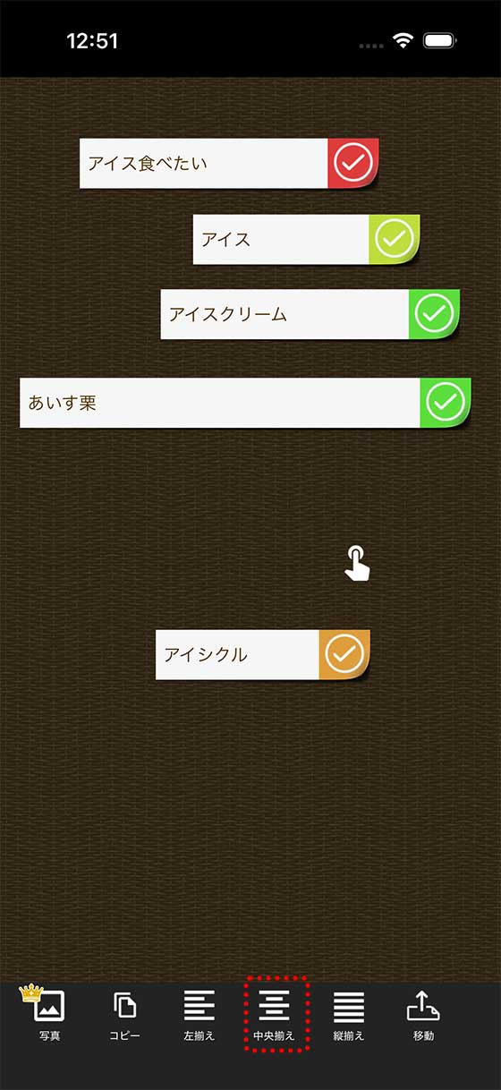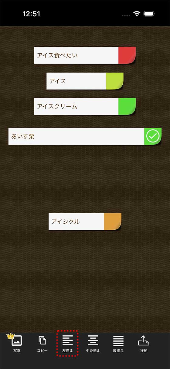 左でそろえる基準になる付箋(今回は「あいす栗」と書いてある付箋)を長押して、出てくるメニューから「左揃え」をタップします。