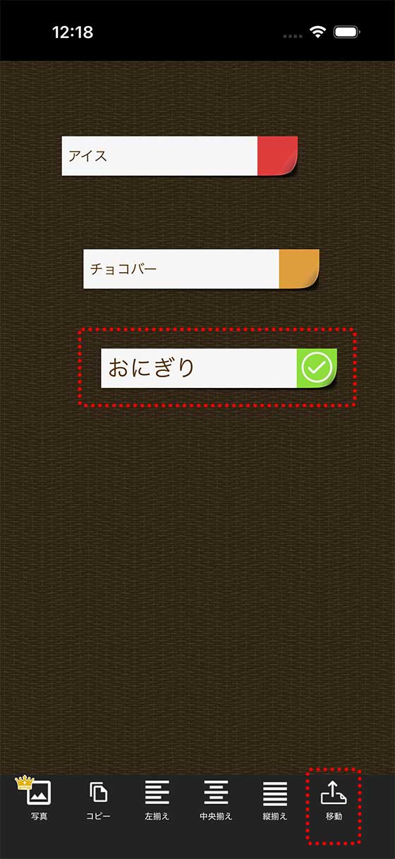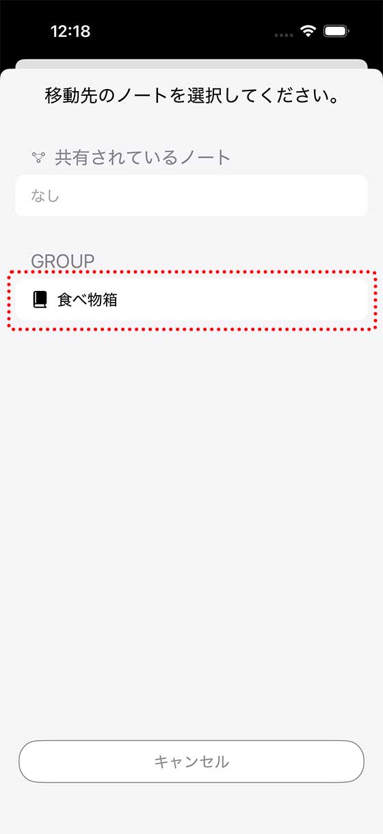 今回は「食べ物箱」ノートに移動させたいので、そちらをタップ。