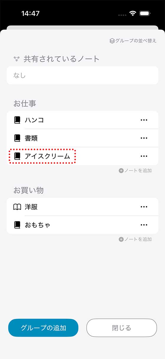 では「グループ」に含まれるノートを変える方法を説明いたします!