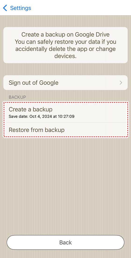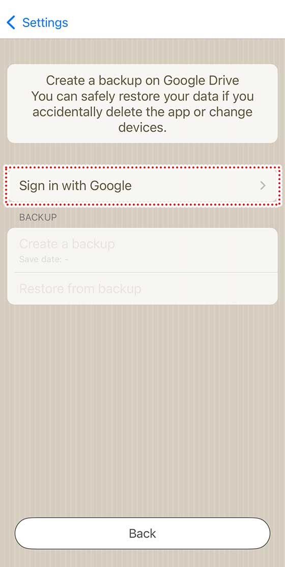 Once you’re signed in, you can press ‘Backup/Restore’ on the settings screen.