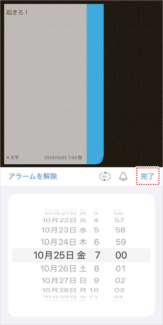 付箋の編集画面で「アラームボタン」を押します。