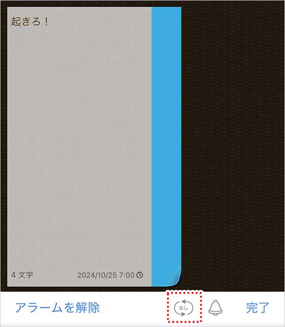 繰り返しアラームを呼び出したい場合は、リピートアイコンを押して…